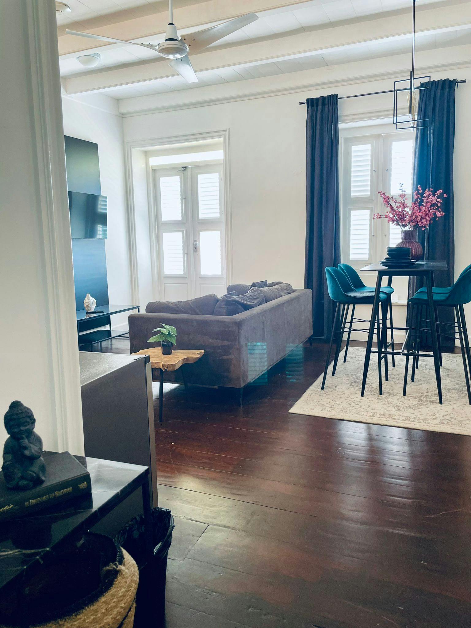 Comfortable Living Space: Relax in the inviting seating area or dine in the dedicated dining space.