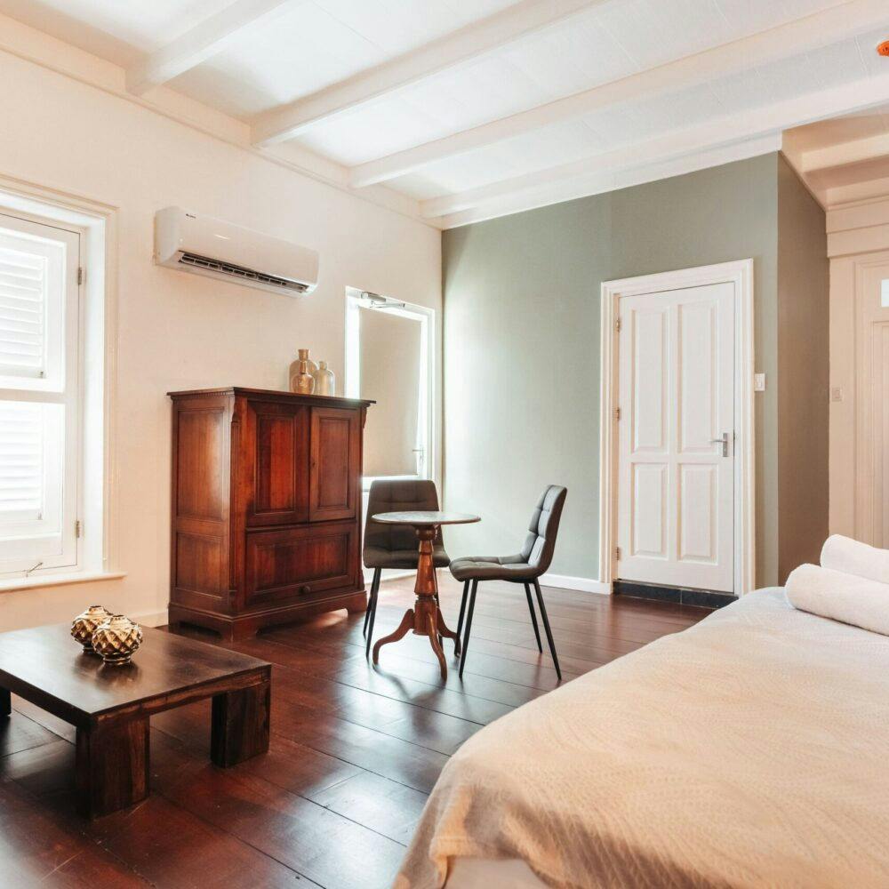 Nestled within our beautifully restored Historic Mansion, the Superior Studio Suite with Kitchenette offers a warm and tastefully decorated atmosphere that will make you feel right at home. Located on the first floor, this suite features a thoughtfully chosen color scheme designed to enhance your comfort and relaxation.